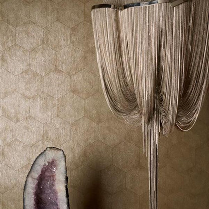This Mineral Wallpaper designed by Cole & Son is from the new Curio Collection. Geology meets geometry in this intricately enigmatic wallpaper of soft shimmering, burnished metallic. Set in a loose hand-drawn hexagonal tile arrangement, these smoky mineral colourings include dusty charcoal, pearl, pewter and oyster, perfect for elegant daylight or low-lit night light.