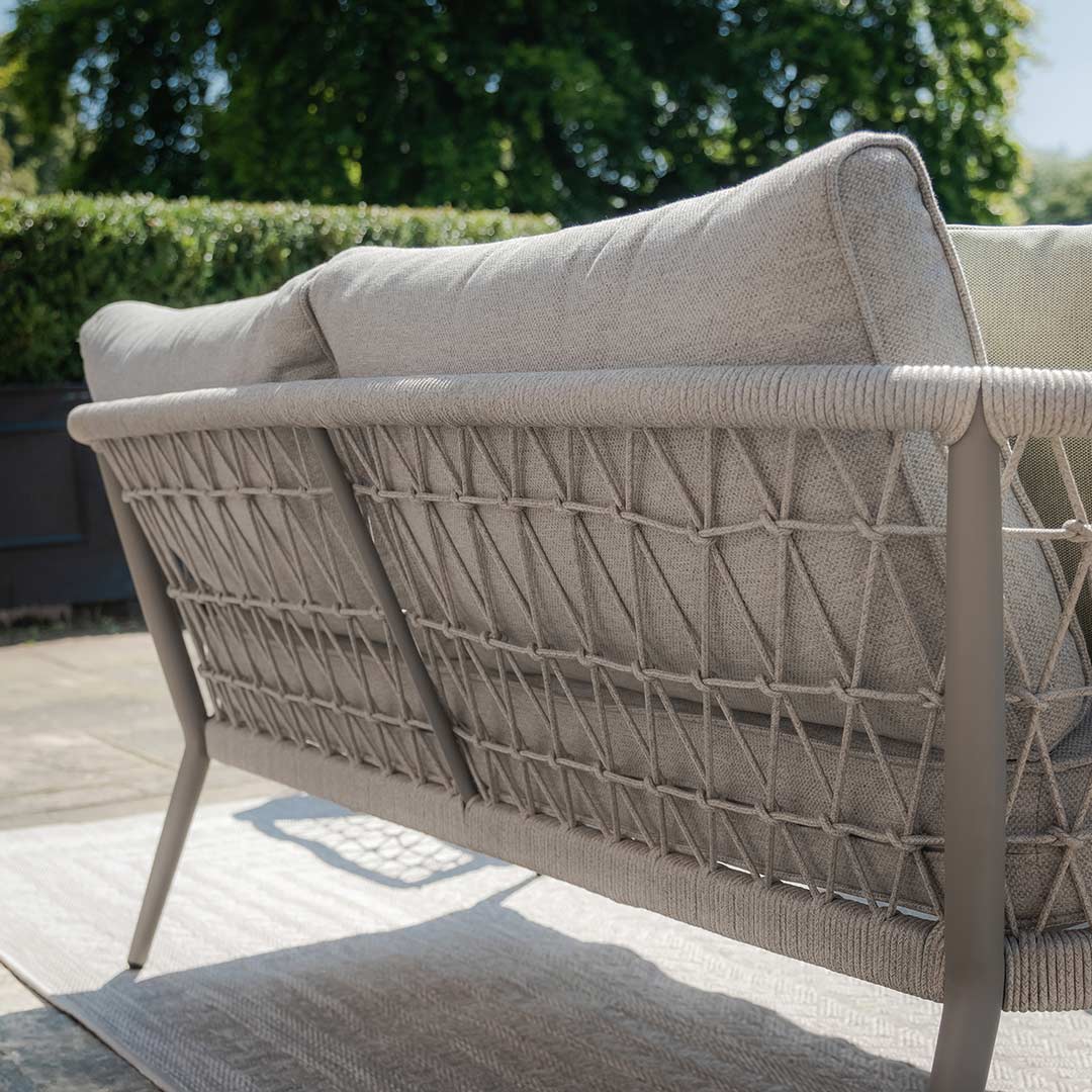 But don't let its lightweight fool you, this sofa set is built to withstand the elements. The showerproof seat cushions provide comfort and functionality, allowing you to relax without worrying about sudden summer showers. The all-weather rope weave is UV and frost resistant and even waterproof, ensuring that your sofa set remains in pristine condition all year round.