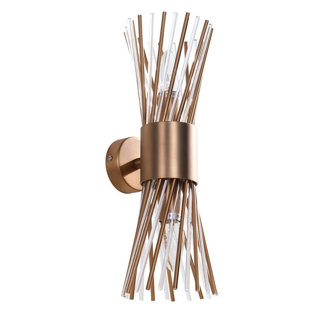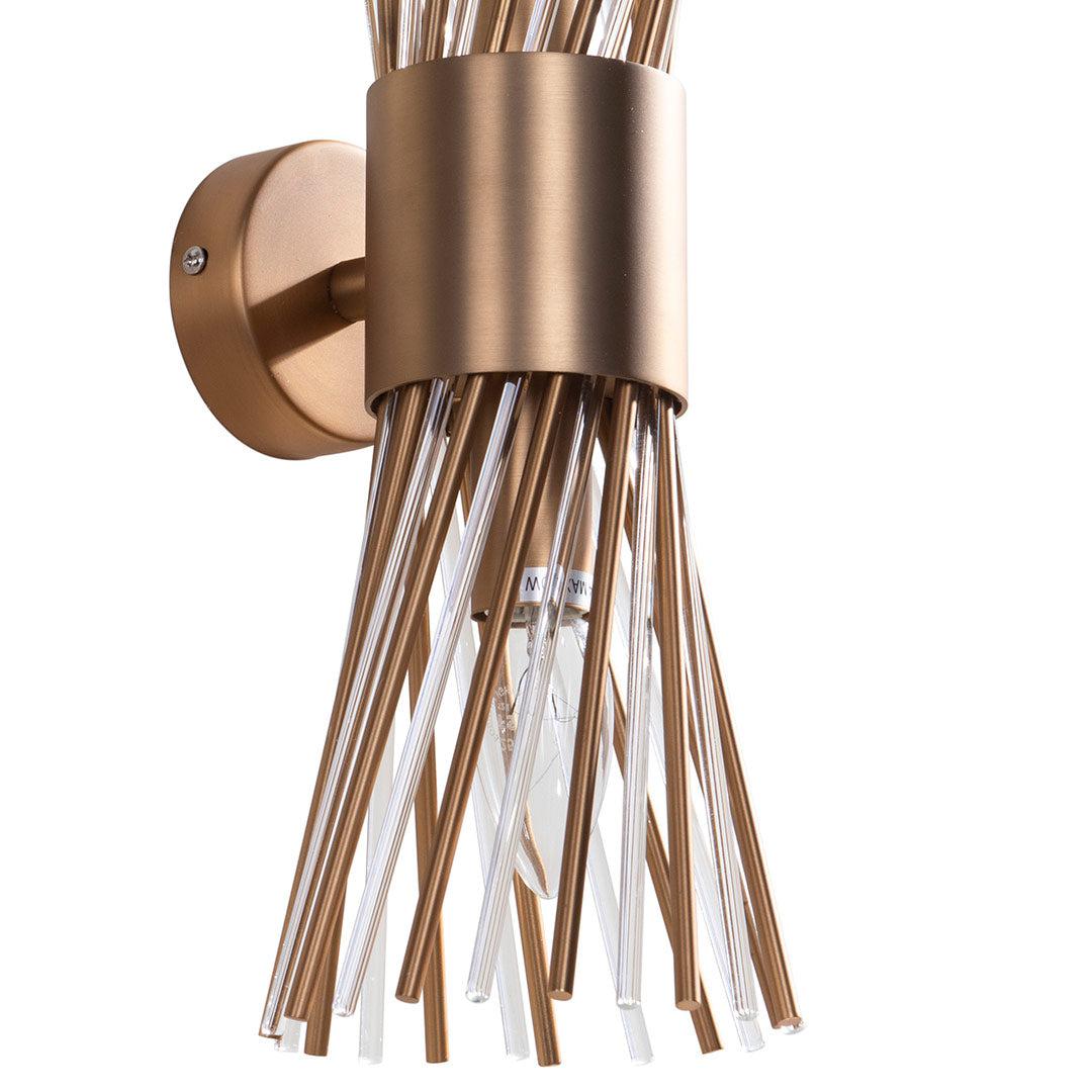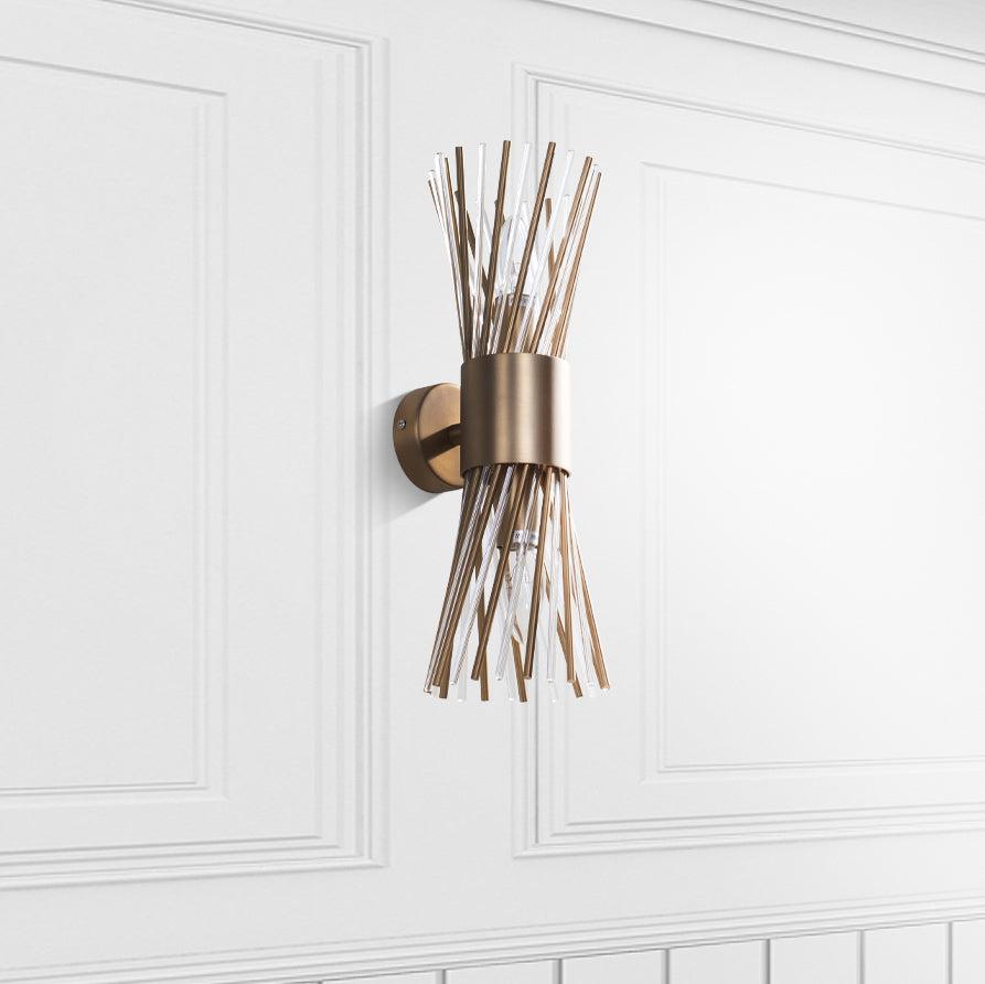 These decorative sconces have individual strands of antique brass and crystal running down through them, to give extra style and better reflect the light, to emanate a warm glow out form the wall into all corners of the room.