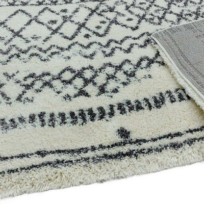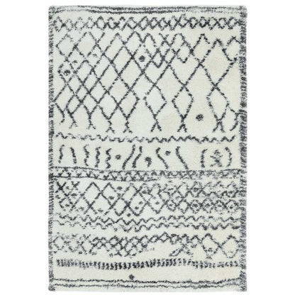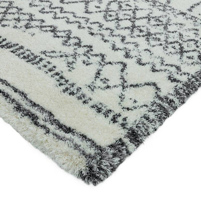 Moroccan Boho Deep Pile Rug - Cream & Grey
