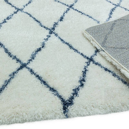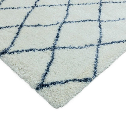 Bring a touch of North African Nomadic style to your home with our fabulous Cream and Blue Moroccan Style Deep Pile Rug.