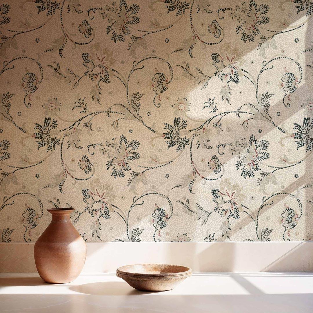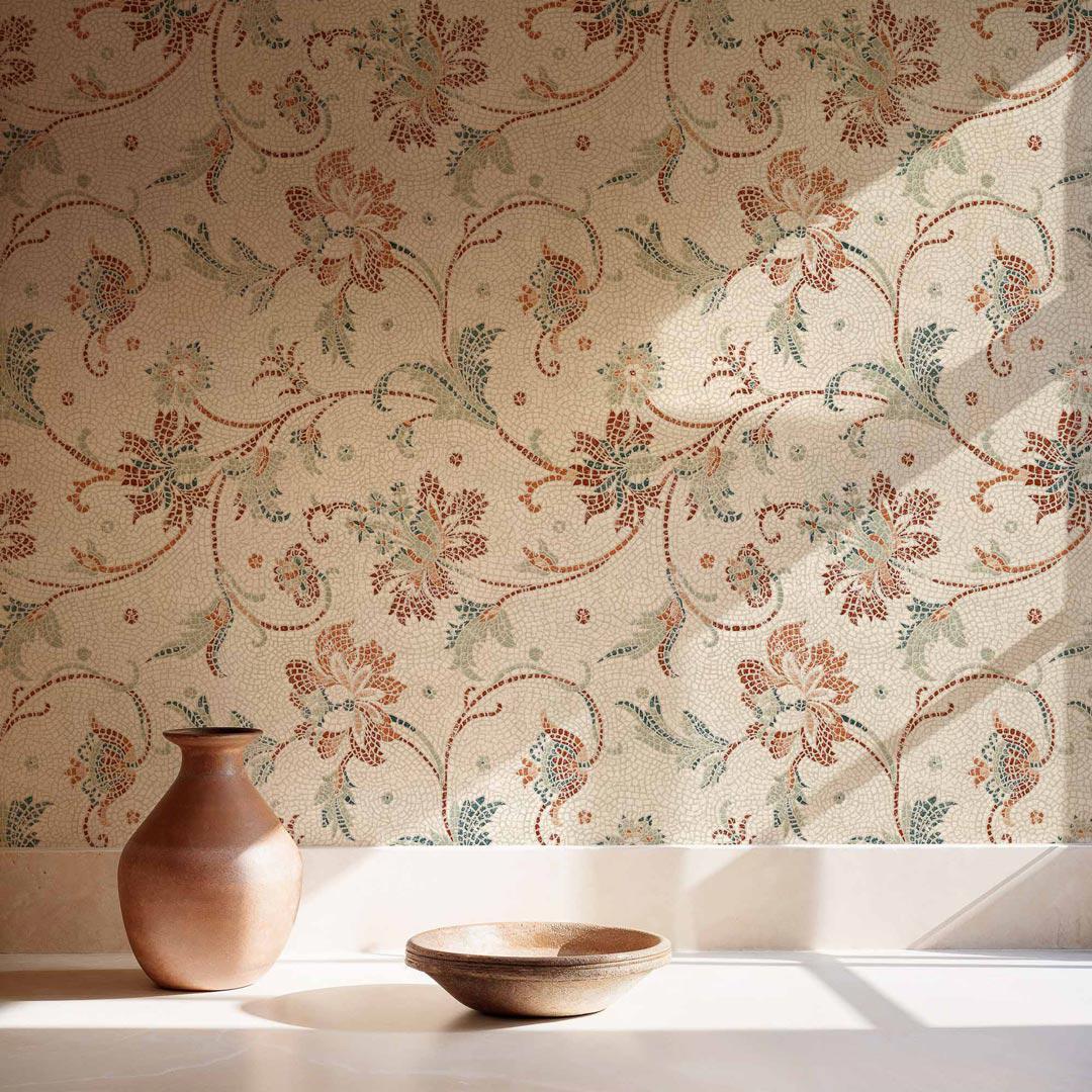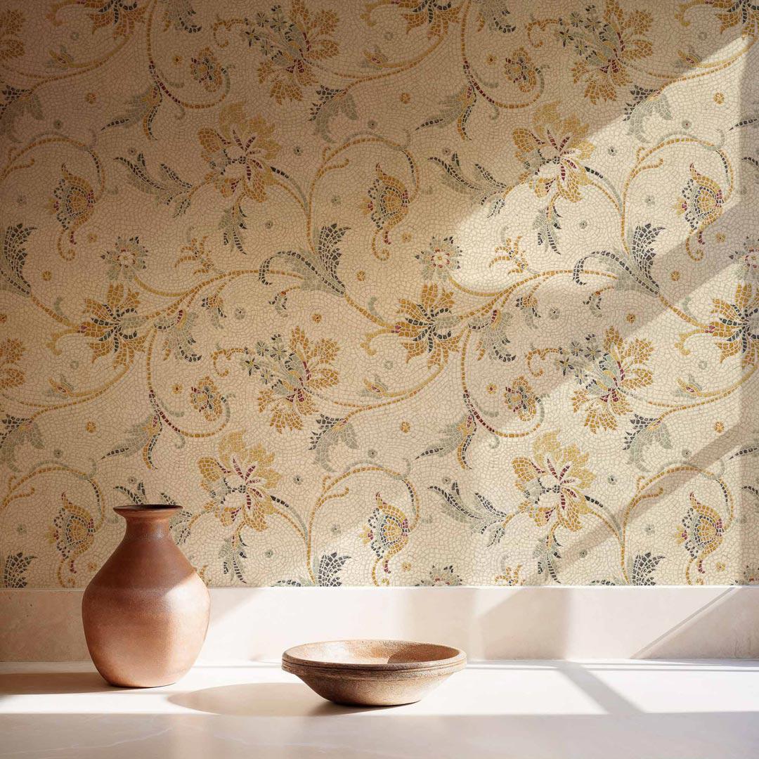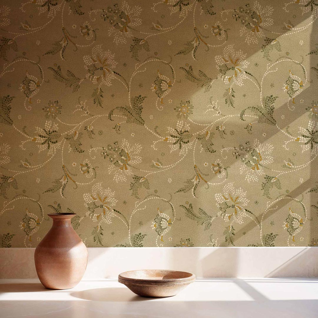 This tile-effect wallpaper is the perfect way to add a touch of historical elegance to any room in your home, whether it's the living room or bedroom. Immerse yourself in the opulent world of ancient Greece with this modern wallpaper that brings the beauty of marble and glass tesserae straight into your living space.