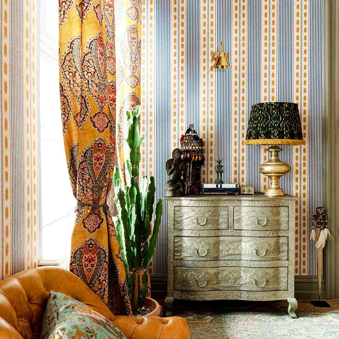 Surround yourself with serenity as you adorn your walls with the MOUASSINE wallpaper from the TALES OF MAGHREB collection. Imagine the calming effect of its shapely lines and tonal lineation's that effortlessly transport you to lush Moroccan gardens full of blooming flowers, olive trees and rustic cobbled path