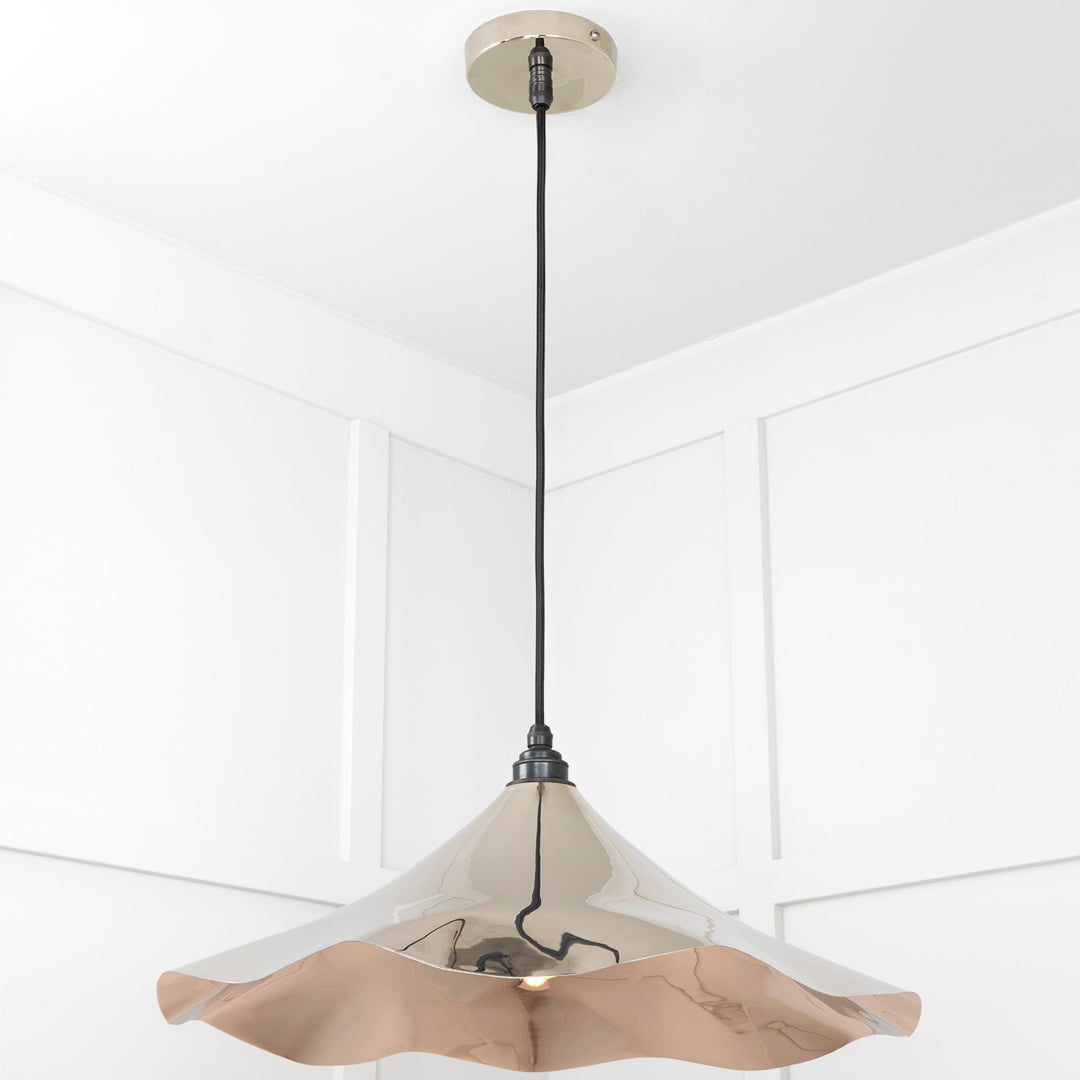 Illuminate your home with the Nickel Flora Pendant Light! With its smooth, contemporary finish and minimalistic design, this light adds a touch of elegance and sophistication to any space.