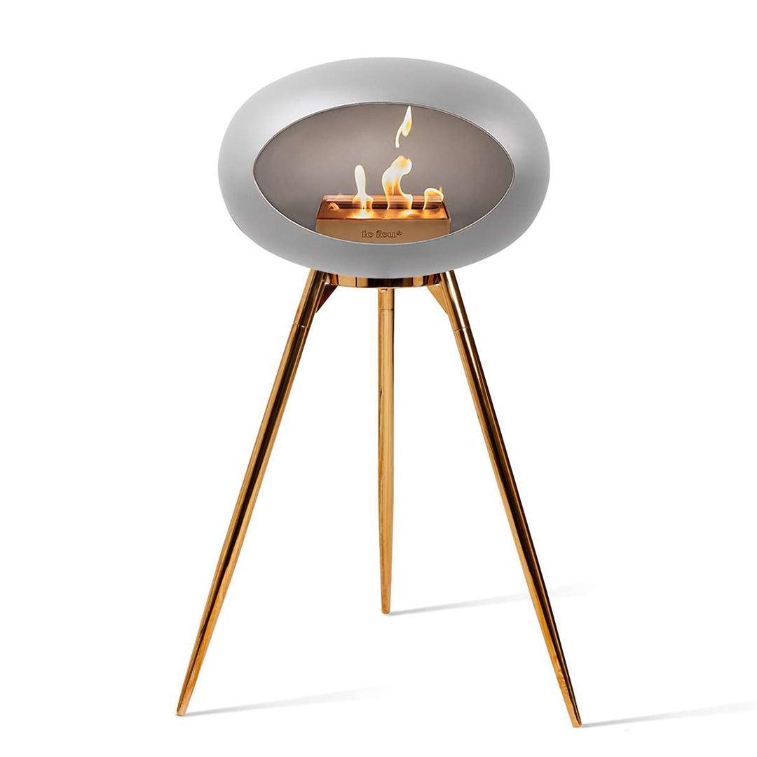 The sleek Nickel Ground High Rose Gold bioethanol tripod fire by Le Feu is a fusion of industrial and contemporary, with an added hint of Scandinavian living. A portable bioethanol fireplace that is perfect for apartments, rooms or patios with limited space, this version comes complete with a Nickel bowl, a rose gold base plate and a stunningly stylish rose gold leg for that extra wow factor.