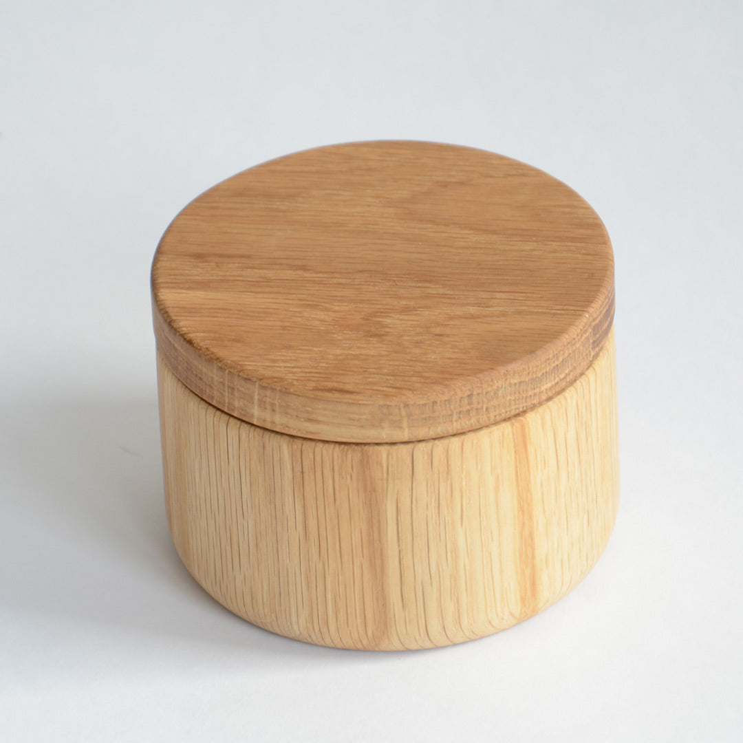 Add a touch of elegance and functionality to your kitchen with the exquisite Oak Swing Lidded Pot. Crafted with precision and care, this handmade pot is the epitome of sophistication. Whether you're seeking a home for your favourite herbs and condiments or a stylish storage solution for your spare keys or cherished jewellery, this pot has got you covered!