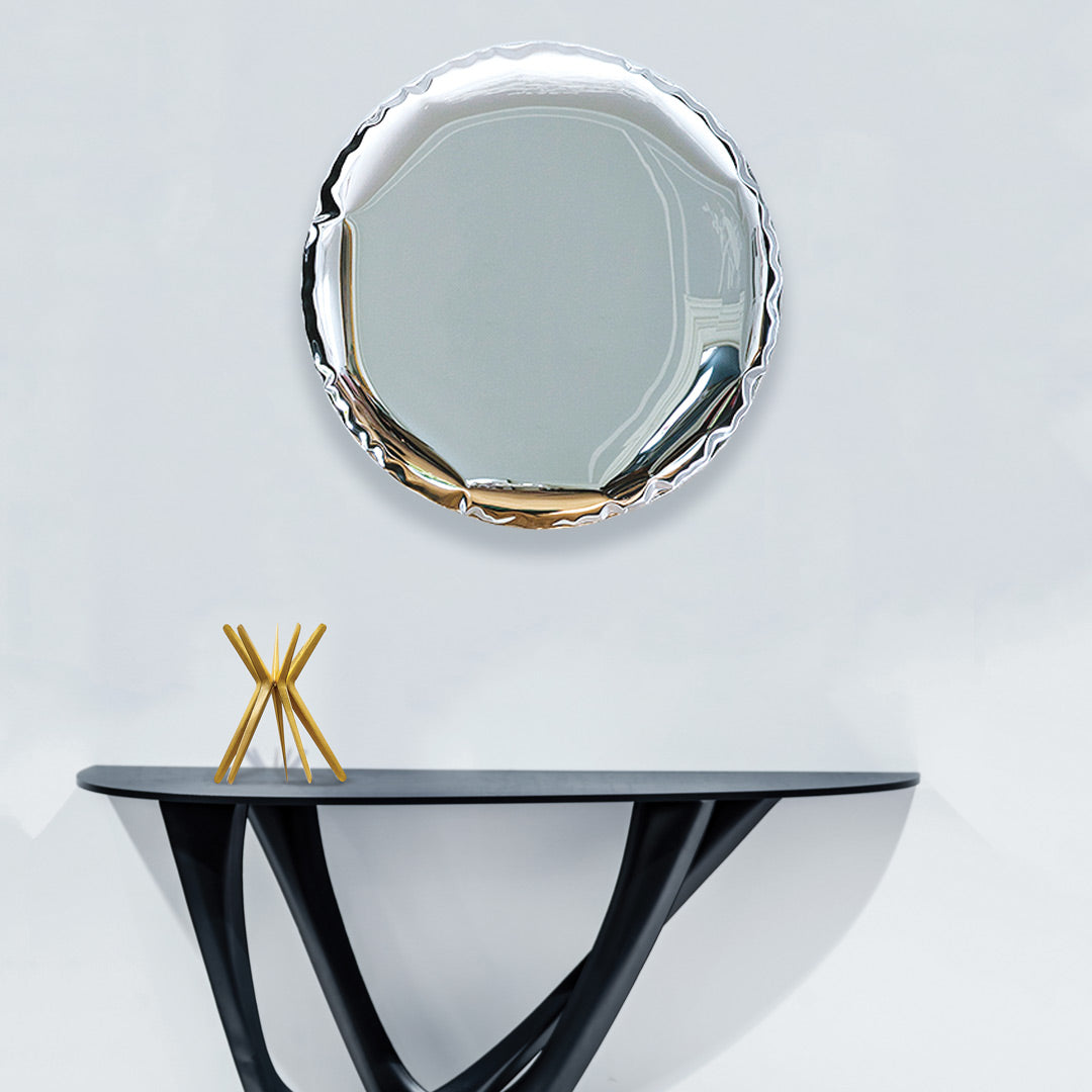 Introducing the Oko Round Mirror by Zieta, the perfect addition to modern interior design! The Oko Mirror stands out in any space, this unique and captivating design with its polished Inox finish, it's sure to shine like no other in your home. Make a statement with the awe-inspiring Oko Mirror.