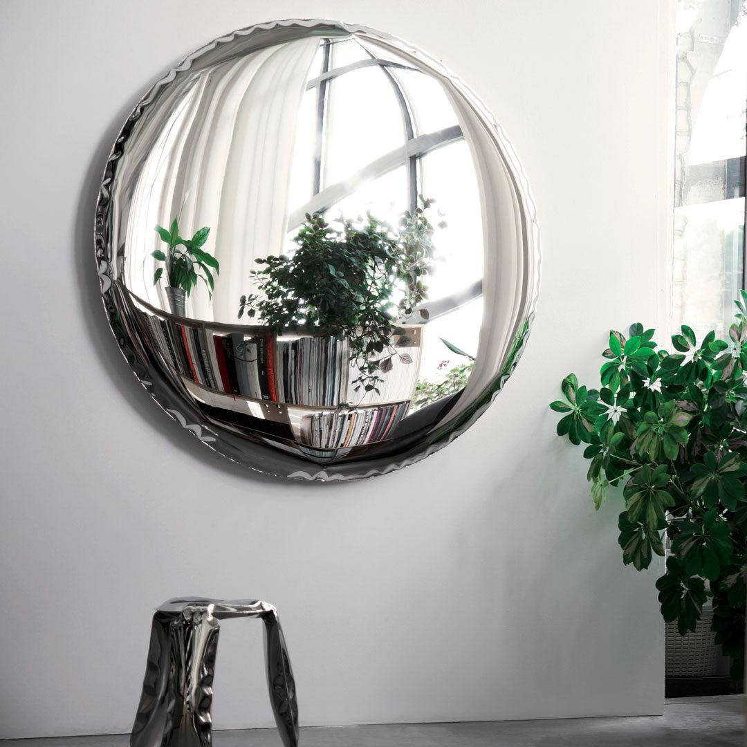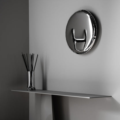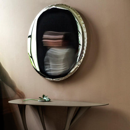 This stylish and unique mirror is made using FiDU technology, where two shapes are cut from steel sheets, welded together around their edges and then inflated into a 3D object.