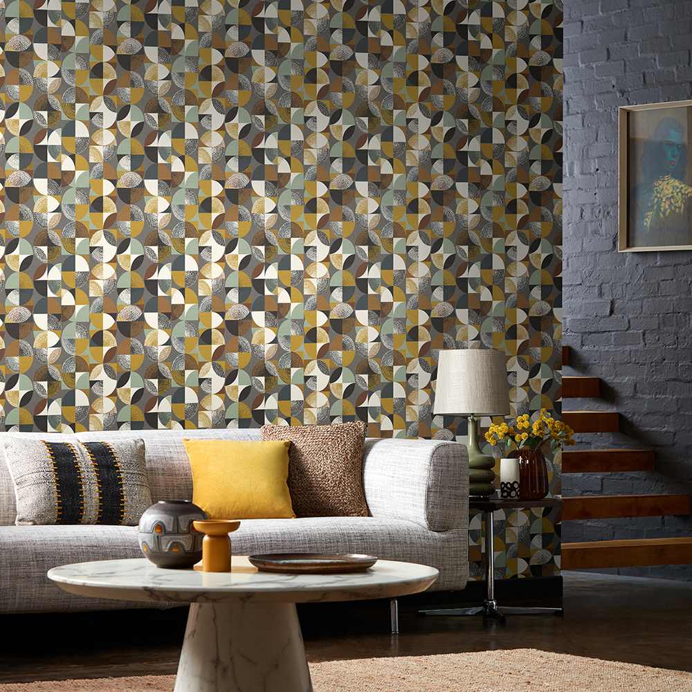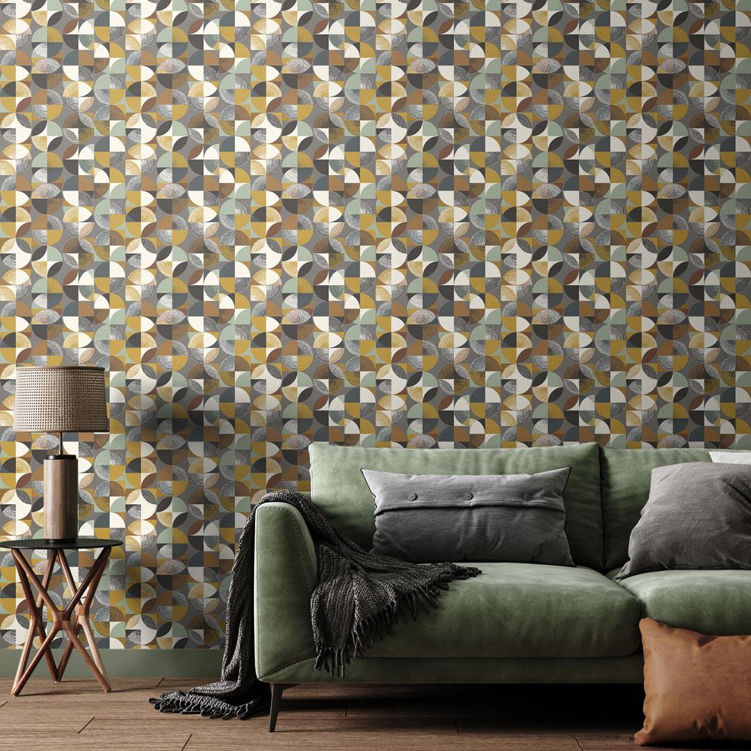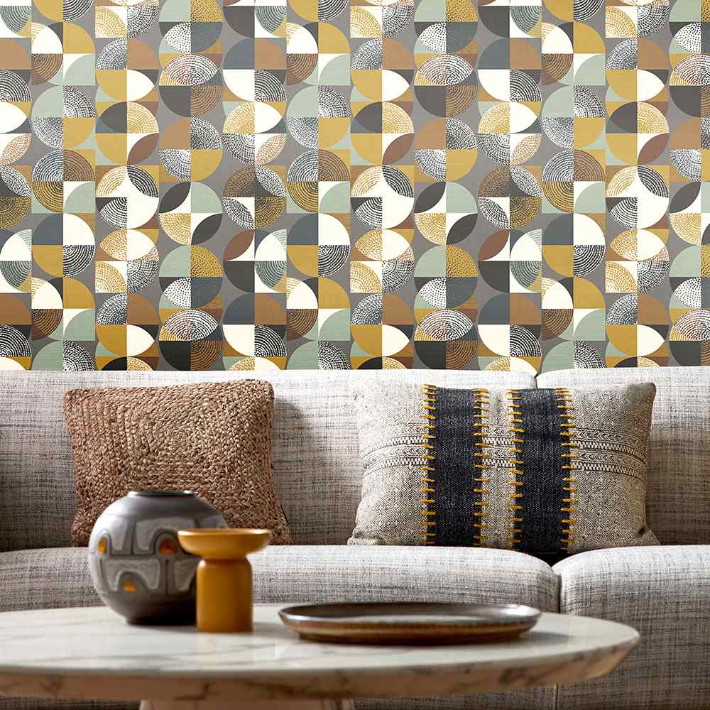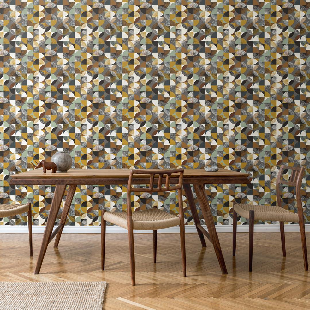 Bring a modern twist to a mid century inspired geometric pattern with the chic Orb Wallpaper by Ohpopsi.