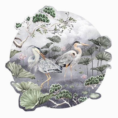 This Silver Orient Wall Decal is an exquisitely hand painted scene that depicts two great blue herons wading through a lily pond in ethereal silvery tones. The detail and finish of this piece is unmatched, making it a true work of art for your home. This decal is perfect for adding a touch of sophistication and serenity to any space.