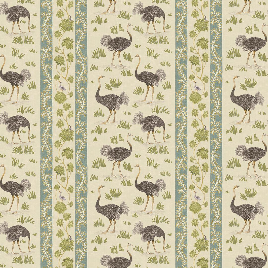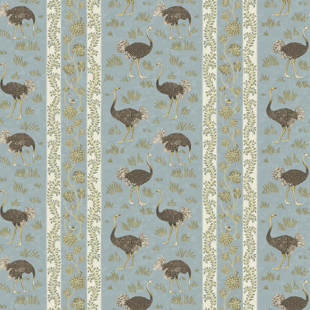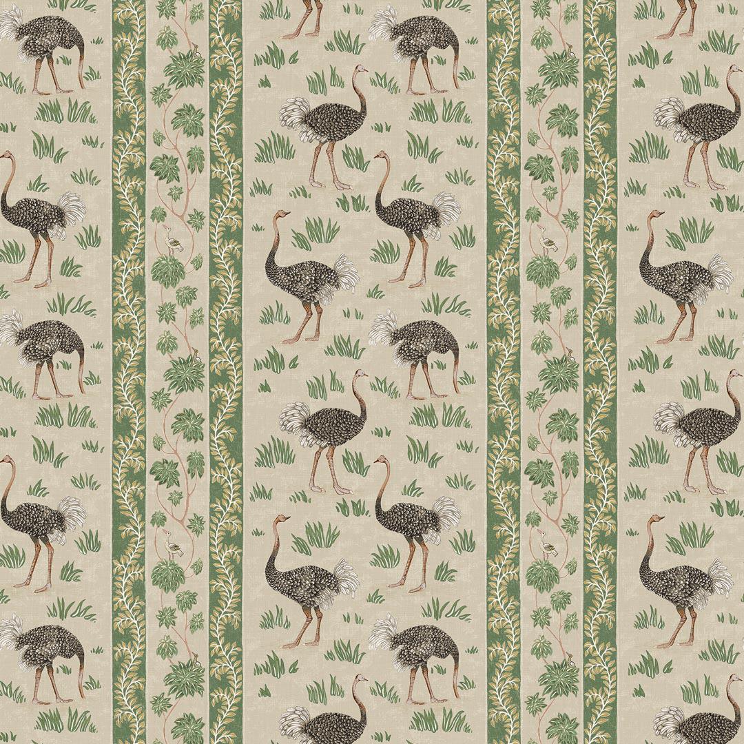 Looking for something to add a majestic touch to your interior? Look no further than Josephine Munsey's Ostrich Stripe Wallpaper! This wallpaper design is inspired by antique botanical prints, with delicate leaf shapes that emerge from shell-like structures along with stunning images of elegant ostriches.