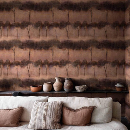 Coordonné’s Ourika Trees wallpaper brings the lush ambience of Morocco's Ourika Valley into any space. This elegant, botanical wallpaper is part of the Berber Collection and features dense, stylised groves of trees inspired by the natural beauty that decorates the valley’s terraces. Designed with a soothing monochromatic grey palette, the pattern conveys a sense of depth and organic flow, creating a serene, nature-inspired atmosphere. Ourika Trees is available in five distinctive colourways—rose, stone, pistachio, sienna, and grey—each offering a unique way to invite the lush essence of the valley indoors.