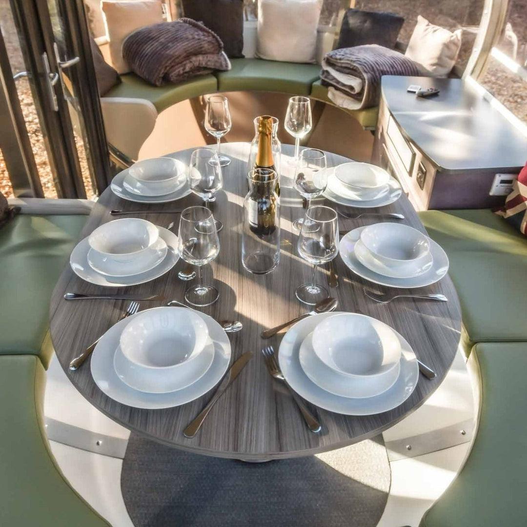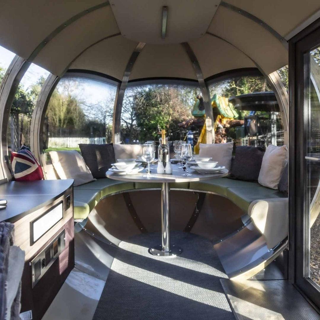 The interior flooring comes as standard with Greyfriar vinyl. The seating covers come in a choice of 5 chic colours; Greyfriar (grey), Gingersnap (orange), Wasabi (pale green), Mulled Wine (red) & Cool Blue. You can upgrade to extra seating with an option to add a half circle-shaped lounging area (see last photo for details)