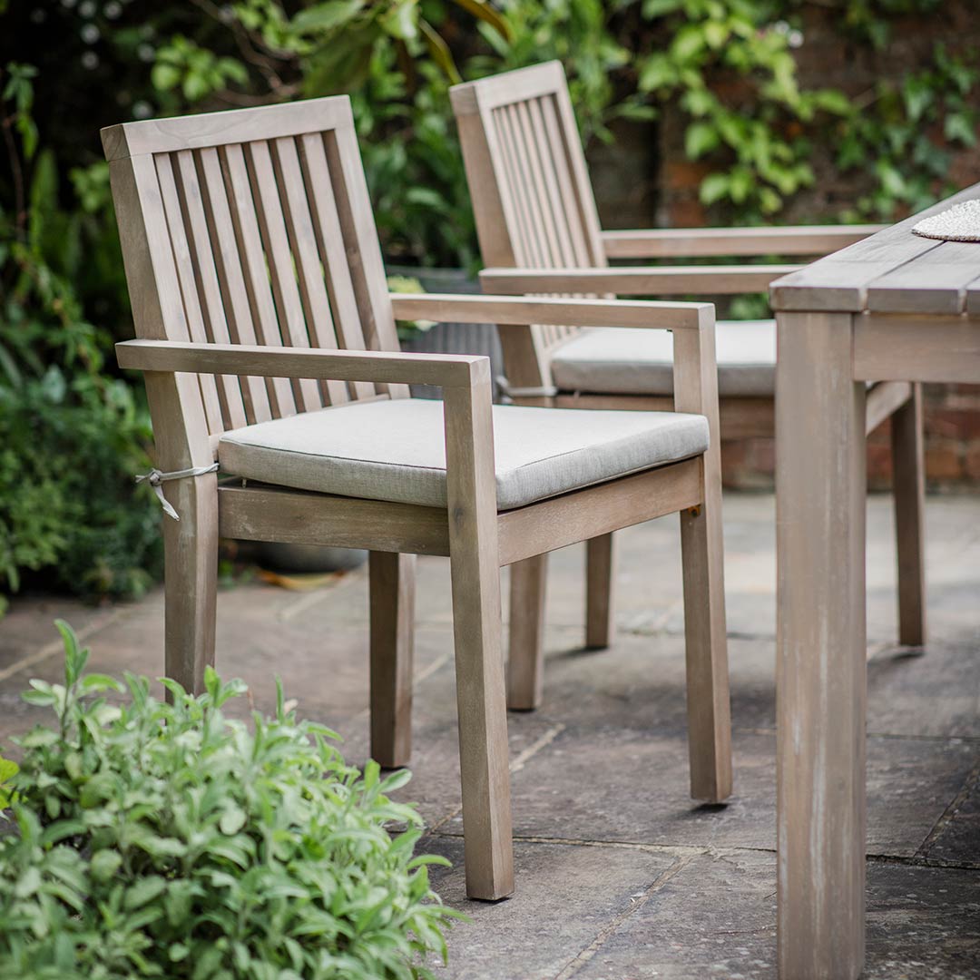 Bring timeless style and ultimate comfort to your outdoor space with this Pair of Porthallow Dining Armchairs! Crafted from luxurious whitewashed acacia wood, these chairs are sure to add a sophisticated touch to any garden or patio!