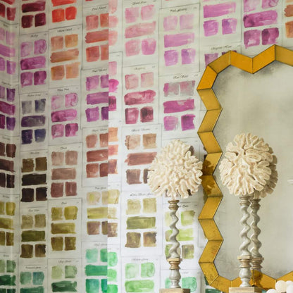If you love colour, then Palette Wallpaper by MINDTHEGAP is the perfect choice to liven up your walls! Our Palette Wallpaper is a reinterpretation of a unique hand painted colour swatch design from the 16th century. This wallpaper literally brings the pages of Boogert's study on colour to life! The vibrant colours of the new palette create a jubilant atmosphere in every room you choose to decorate.