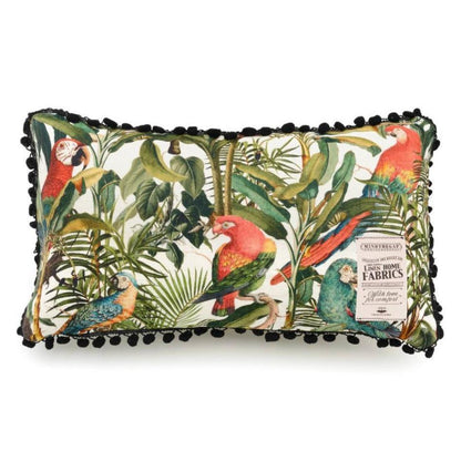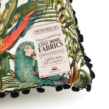 Bring a touch of the tropics to your home with the stunning Parrots of Brasil Bolster Cushion by Romanian designer MINDTHEGAP. An exotic design with beautiful parrots and palm leaves inspired by the flora and fauna of Brazil.