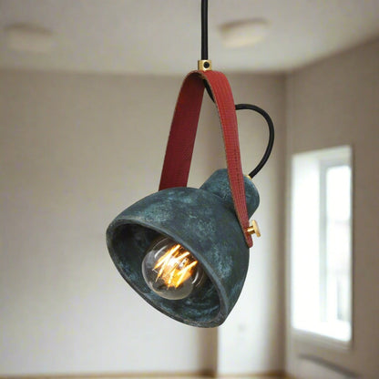 Sporting a sustainable style, the stylish and quirky Pera Ceramic Pendant Lamp with Rescued Fire Hose Strap features a unique cone-shaped ceramic shade incorporating a beautiful red fire-hose strap.