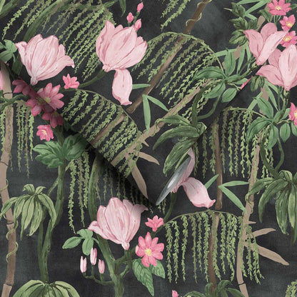 The Pierre Wallpaper in Noir is a stunning painterly wallpaper inspired by the groundbreaking work of renowned French botanist Pierre Magnol. His discoveries have revealed the ancient lineage of the Magnolia flower. This floral wallpaper design takes inspiration from chinoiserie and oriental styles, giving it a unique and intriguing aesthetic.