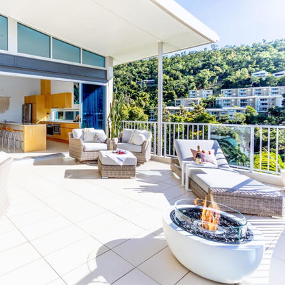 This white fire table is made with Fluid Concrete Technology making it structurally robust and weatherproof. It comes in a choice of 3 finishes and a larger size, please see other listings.