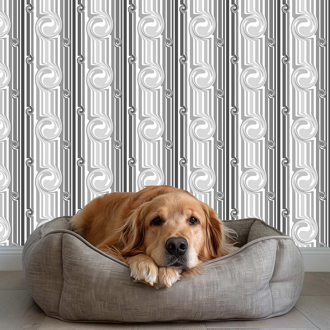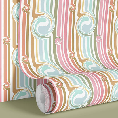 More than just visually arresting, these wallpapers are crafted to the highest standards, ensuring a premium feel and lasting impact. Let the bold stripes add a sense of structure and playful rhythm, while the swirling patterns introduce an element of captivating movement and artistic flair. The interplay between these contrasting yet complementary designs creates a depth and intrigue that will captivate the eye and spark conversation.