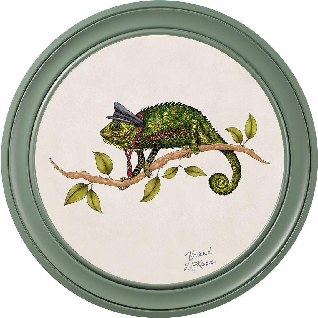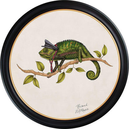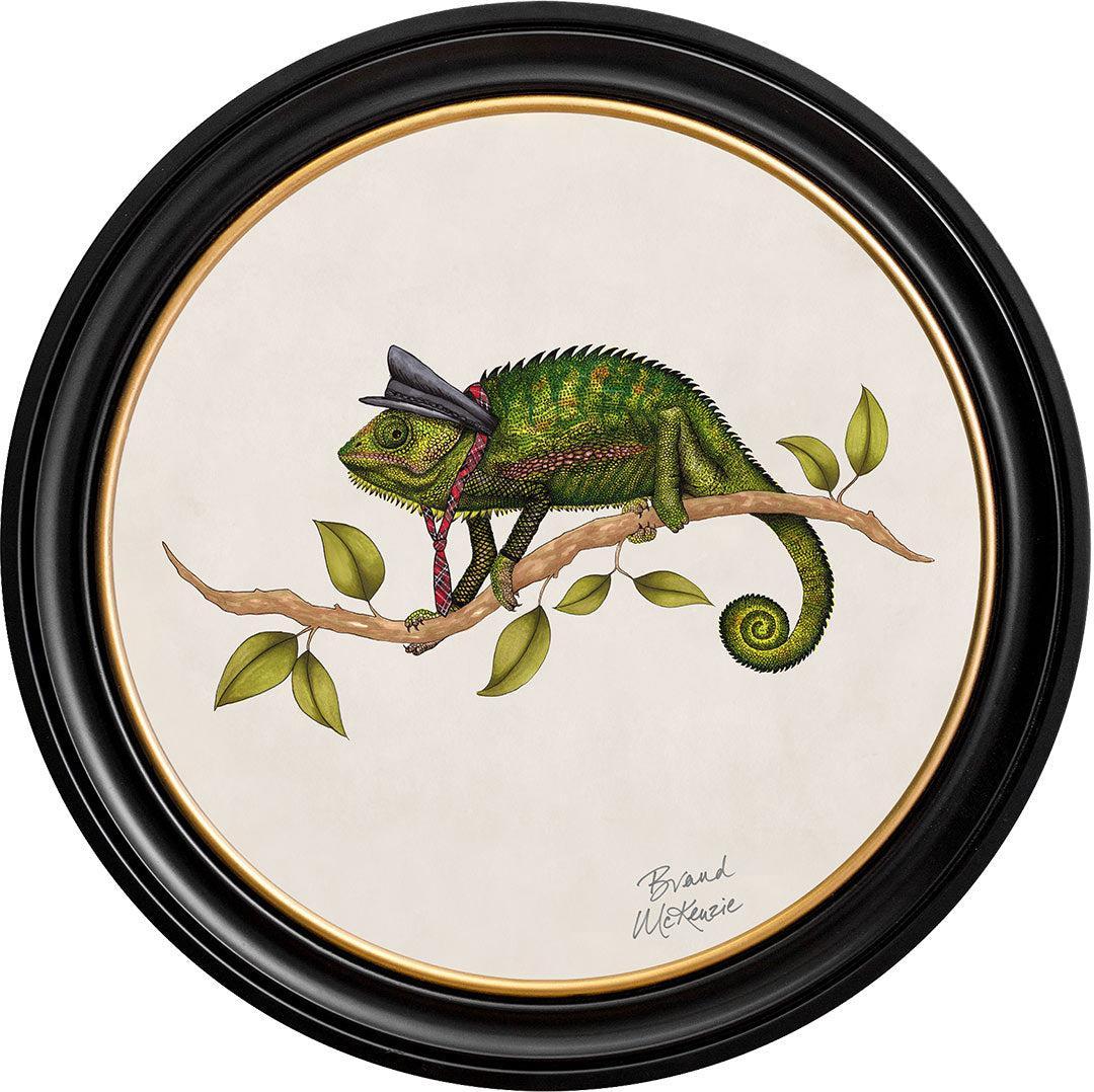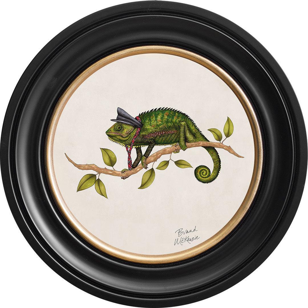 Discover the intriguing charm of Cleo with this framed art print from Brand McKenzie's "Punk Rocks" range. Cleo, a charismatic chameleon and master of disguise, seamlessly adapts to any scene, yet his rebellious spirit is undeniable. Sporting a loosely knotted tie and a rakish cap, he embodies a captivating blend of mischief and mystery. Bring Cleo's unique and unexpected flair to your walls!