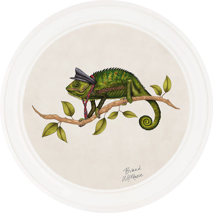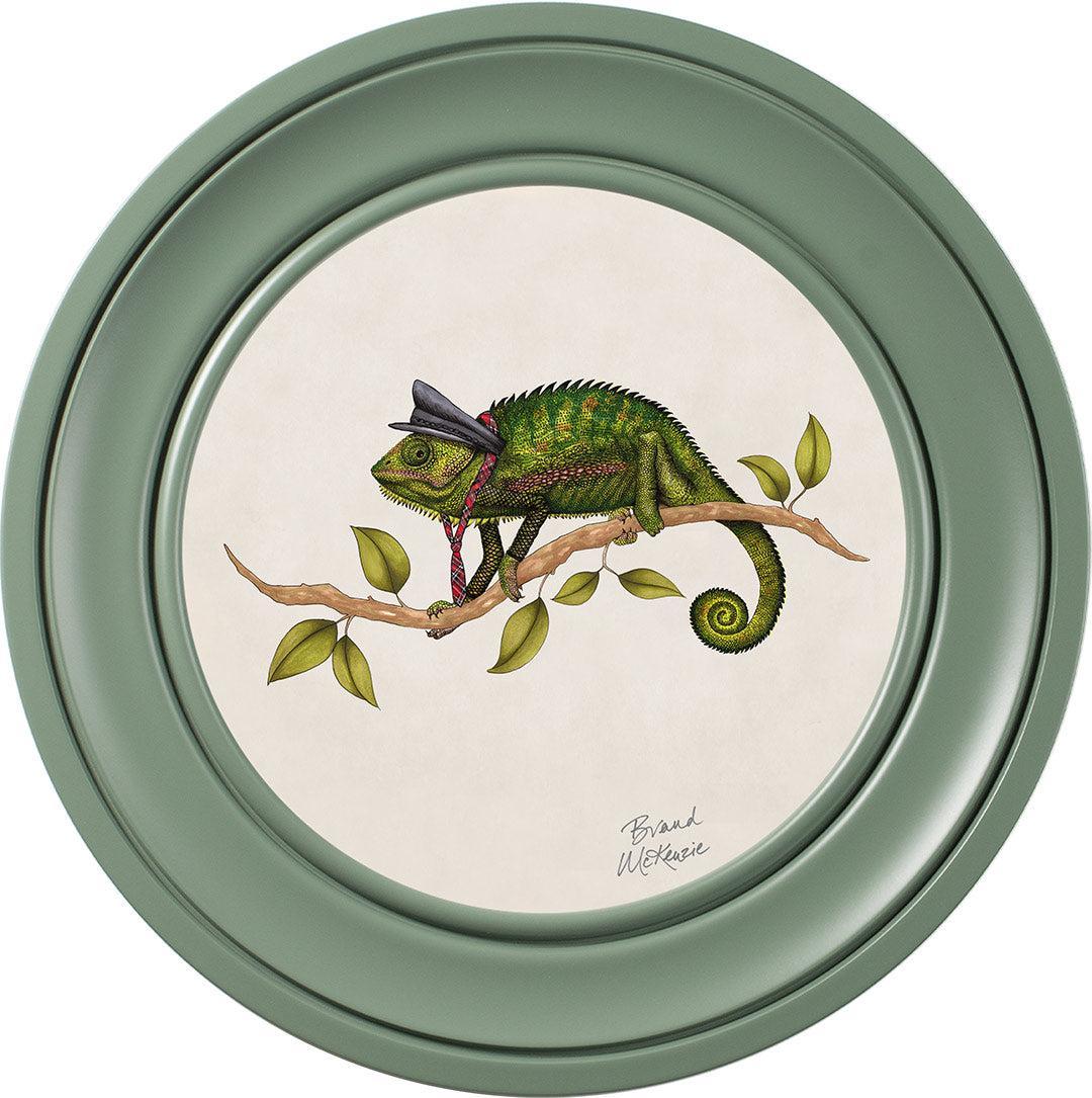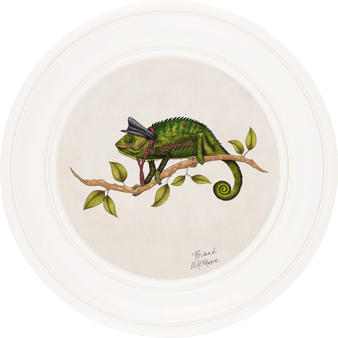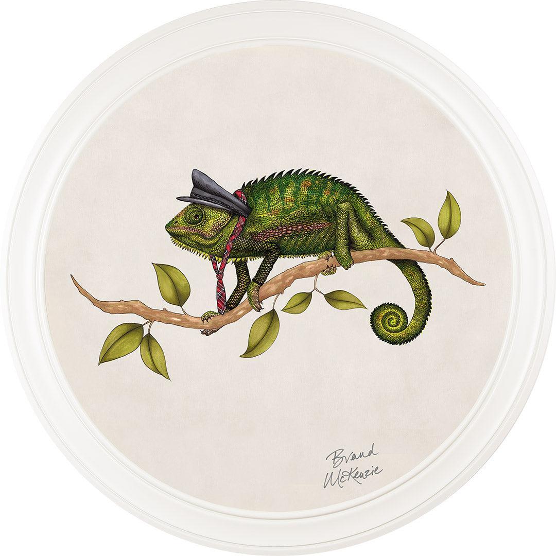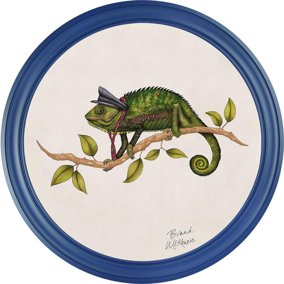 Discover the intriguing charm of Cleo with this framed art print from Brand McKenzie's "Punk Rocks" range. Cleo, a charismatic chameleon and master of disguise, seamlessly adapts to any scene, yet his rebellious spirit is undeniable. Sporting a loosely knotted tie and a rakish cap, he embodies a captivating blend of mischief and mystery. Bring Cleo's unique and unexpected flair to your walls!
