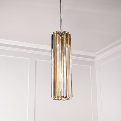 The Reagan Brass Pendant by RV Astley is the perfect way to upgrade your living room, bedroom, or entryway! This crustal ceiling light will draw the eye to the room and highlight any interior setting. It's glistening crystals and antique brass touches create a stunningly sophisticated display when a decorative bulb is used.