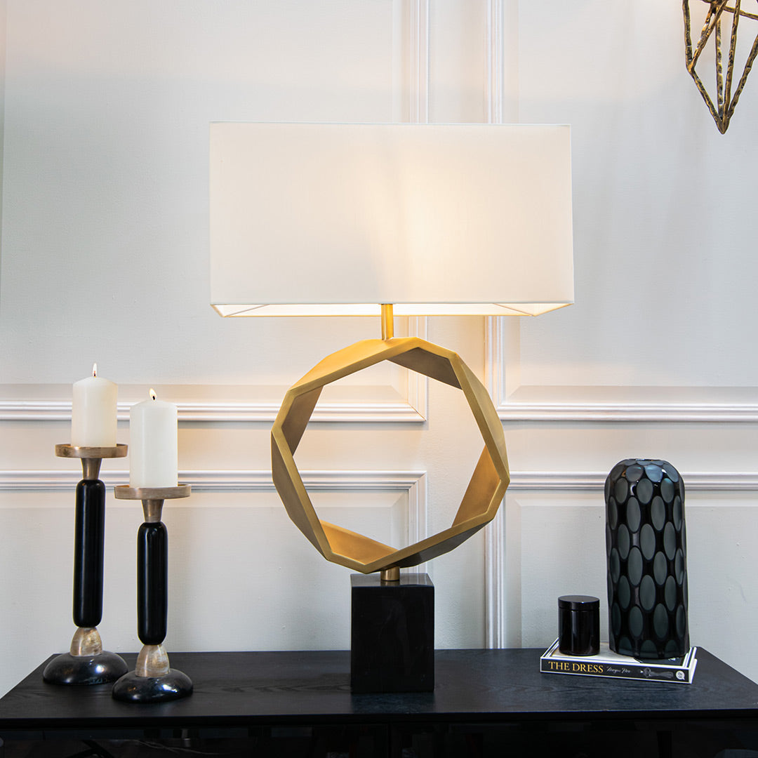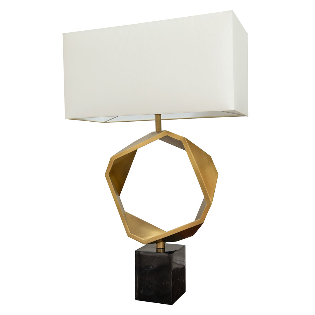 Add a touch of artistic intrigue to your home with the RV Astley Riley Table Lamp. Its deliberately unique design features a geometrically twisted antique brass circle resting upon a bold black marble block, creating a visually appealing focal point. Whether your style leans towards contemporary chic or understated minimalism, the Riley Lamp effortlessly integrates and elevates your interior décor