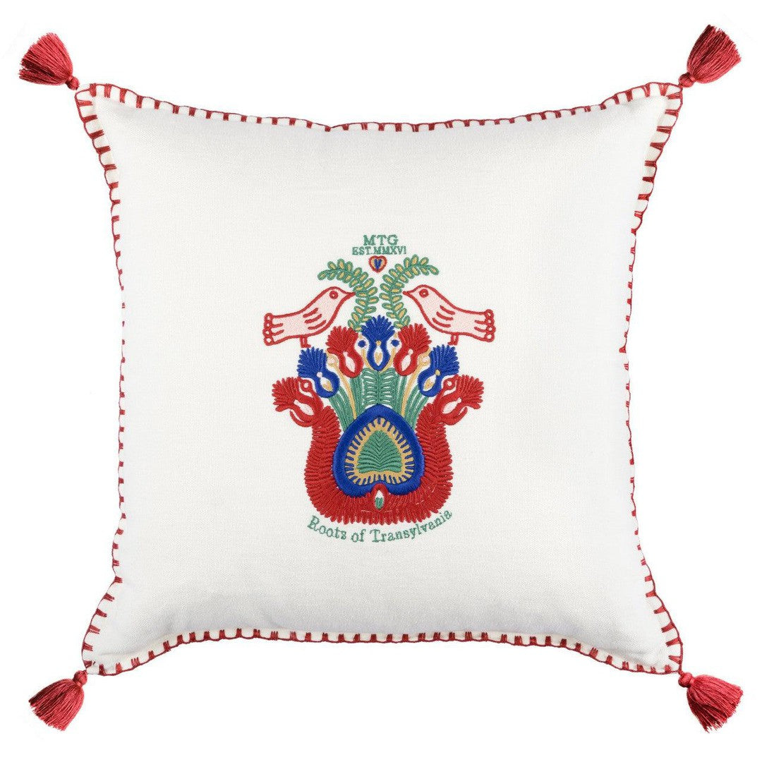 Bring your decor to life with the Roots Of Transylvania Embroidered Cushion from Mind The Gap. This exquisite cushion features a traditional folk design that is perfect for adding an elegant touch to any room.