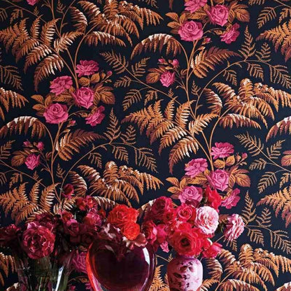 This edgy Rose wallpaper by Cole and Son forms part of the new Botanical Botanica Collection and features the quintessential English Rose alongside delicate fern fronds.