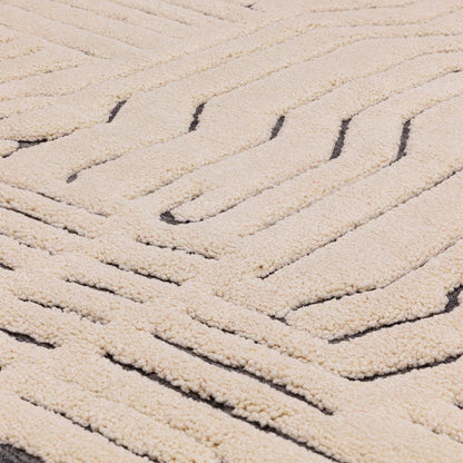 The Route Rug in Ivory And Charcoal is an eye-catching geometric rug that makes an attention-grabbing statement on its own while providing an indulgent, ultra-soft place to sink your feet. It boasts an impressive high-low pile that adds texture and gives it an amazing velvety feel underfoot.