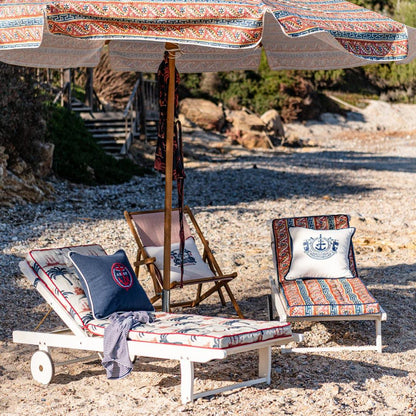 Lounge in luxury with the Samothraki Sunbed Cushion, the perfect addition to your outdoor oasis. Inspired by the Mediterranean's vibrant hues and intricate patterns, this sunlounger cushion will transport you to a coastal paradise every time you lay on it.