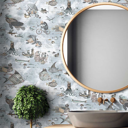 Sea Life Wallpaper, Aqua and Sand by Brand McKenzie brings boldness and detail to life, with intricate styling against a calming neutral backdrop. Both fun and innovative, this beautiful wallpaper invites your guests to get a look up close, meaning it can be used to create an amazing feature wall. we think it looks completely at home in a stylish bathroom, to complete your interior makeover.