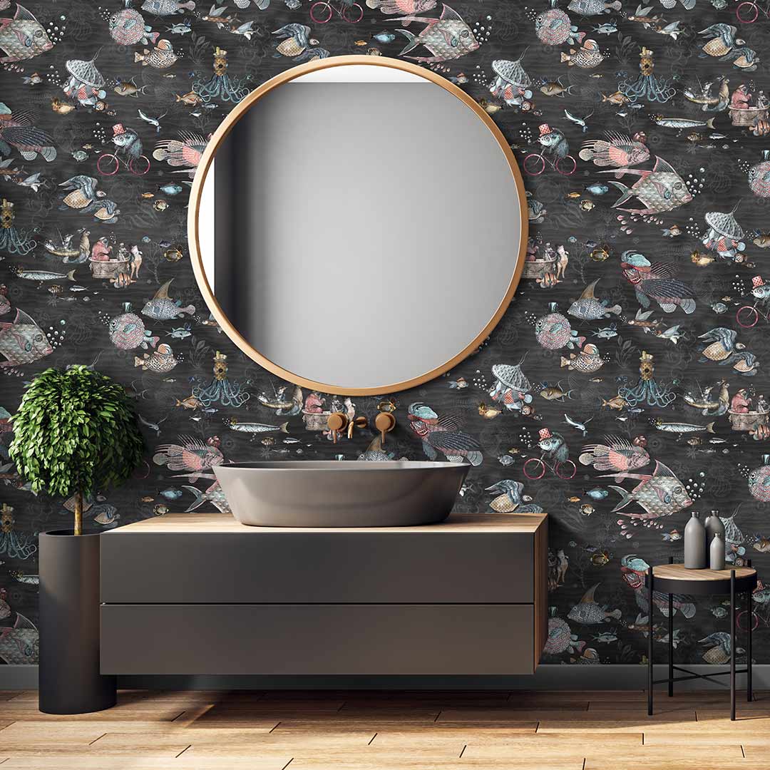 Sea Life Wallpaper, Charcoal and Pink by Brand McKenzie creates a stunning contrast, with the sleek charcoal background brought to life by bright pink detailing. Both fun and innovative, this beautiful wallpaper invites your guests to get a look up close, meaning it can be used to create an amazing feature wall. we think it looks completely at home in a stylish bathroom, to complete your interior makeover.