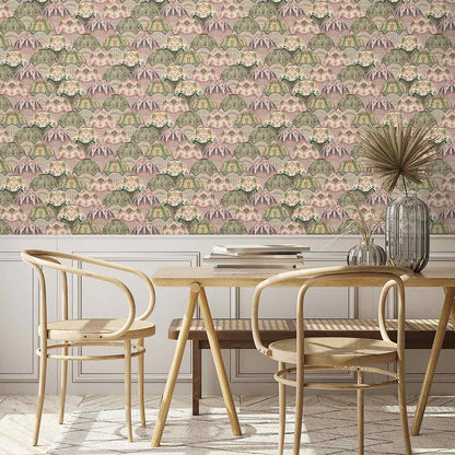 Silk Shades Wallpaper Salmon and Olive by Brand McKenzie is a celebration of colour, style and pattern. The warm pink tones blends exquisitely with neutrals to create a beautiful contrast, and the repetitive pattern allows for it to easily be used as a feature wall or complete interior makeover. At home in a living or dining area, this wallpaper can also be used in kitchens, bathroom sand bedrooms.