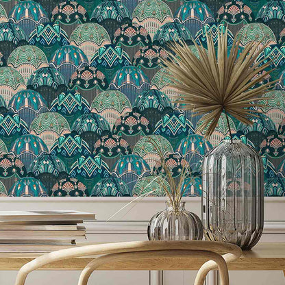 Silk Shades Wallpaper Teal by Brand McKenzie is a celebration of colour, style and pattern. The bright blues create a beautifully bold statement, and the repetitive pattern allows for it to easily be used as a feature wall or complete interior makeover. At home in a living or dining area, this wallpaper looks especially good in a kitchen or bathroom due to the sea like colours.