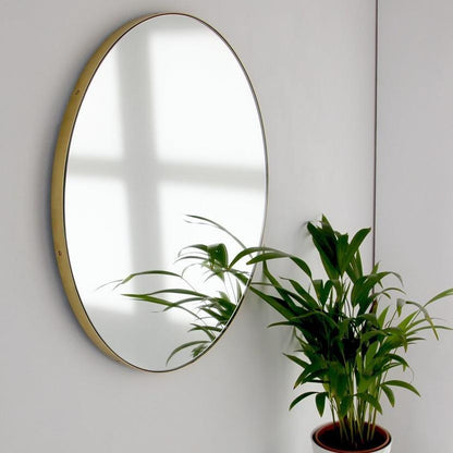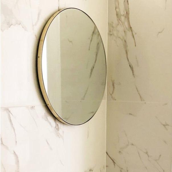 Designed and made in the UK, this timeless round brass mirror has a depth of 18mm and is available in 4 different sizes: