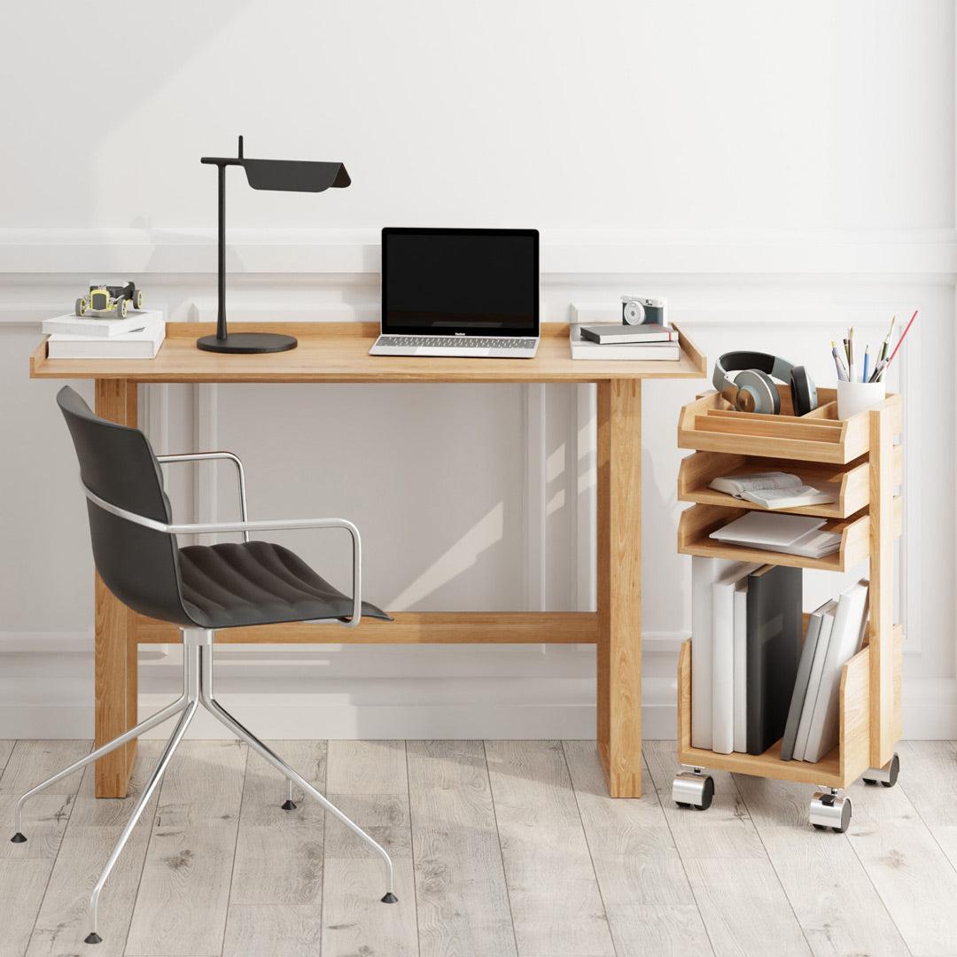 With its slim dimensions, this desk effortlessly fits into any nook or cranny, making it a true space-saving superstar. No more sacrificing style for function - the Slim desk is designed with a lipped edge on three sides, ensuring that your essentials stay put, even during your most frantic moments. Say goodbye to those pesky pen rolls and runaway paper clips!