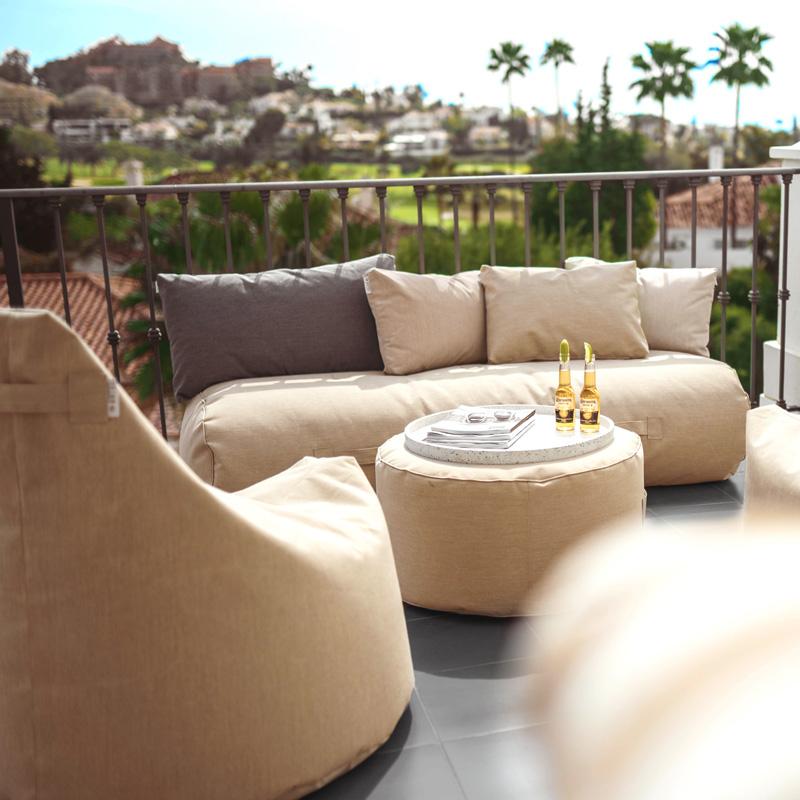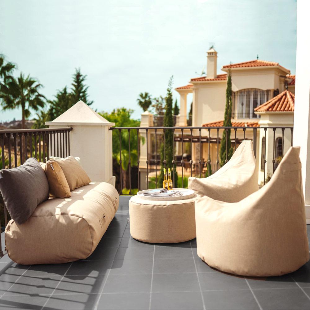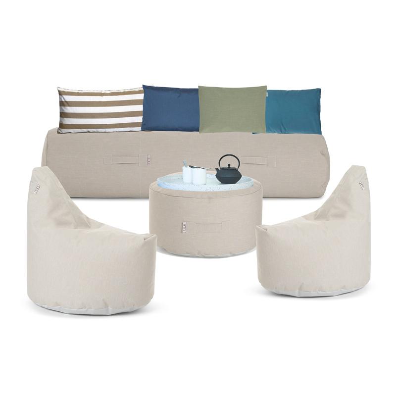 The stylish rocket outdoor daybed can be used against the wall with pillows, to create a cozy seat and the complimentary chairs make this beanbag seating set a comfortable place to relax with friends.