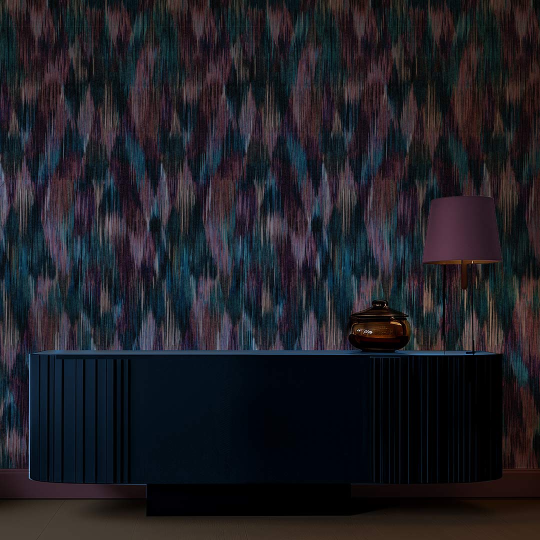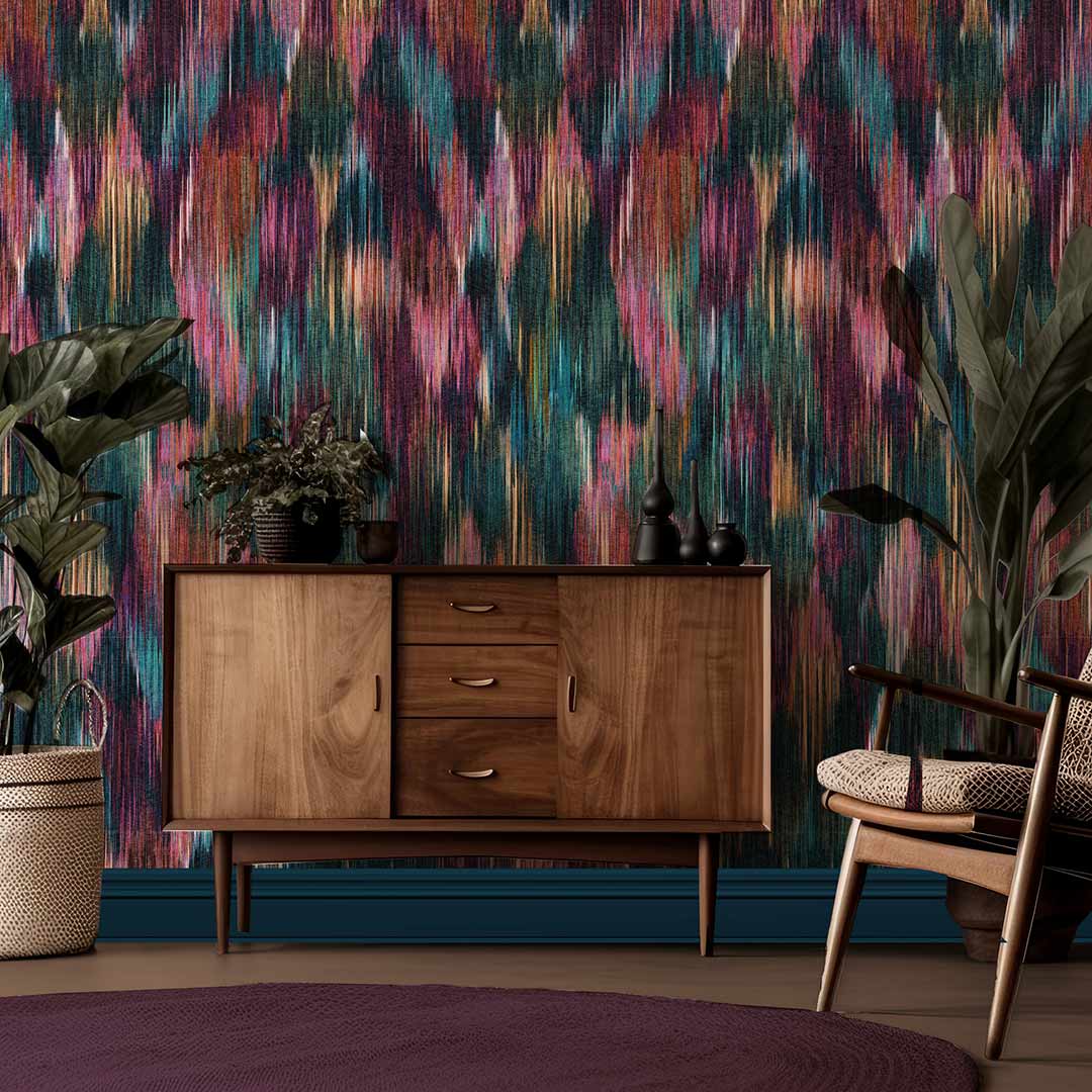 Step into a world of colour and creativity with our stunning Spectre Ikat Wallpaper. This hand-painted geometric design is a true work of art, ready to transform any room into a masterpiece of style and sophistication.