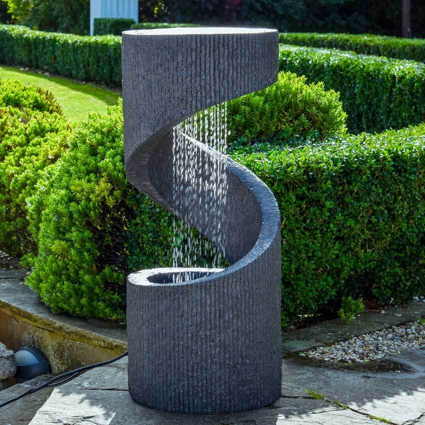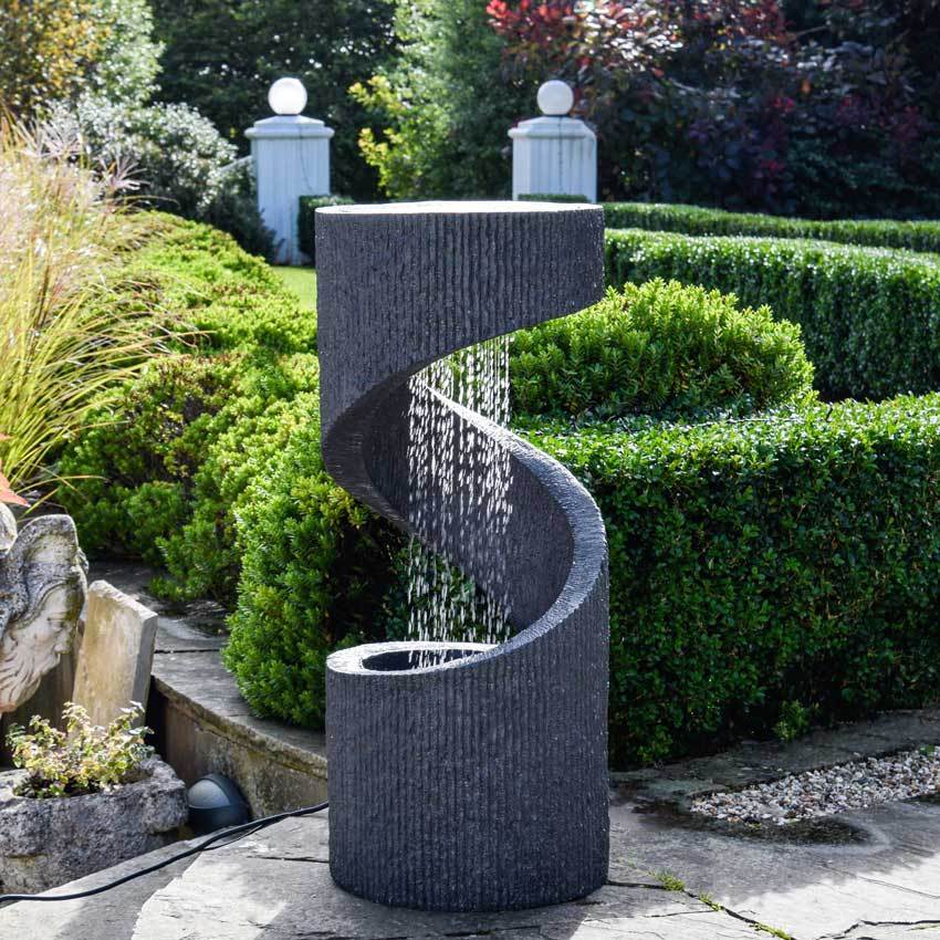 This beautifully sculptured and relaxing Spiral Outdoor Granite Water Feature will suit any garden, courtyard, deck or patio. Water gently flows from the inside of the fountain and creates a stunning waterfall effect.