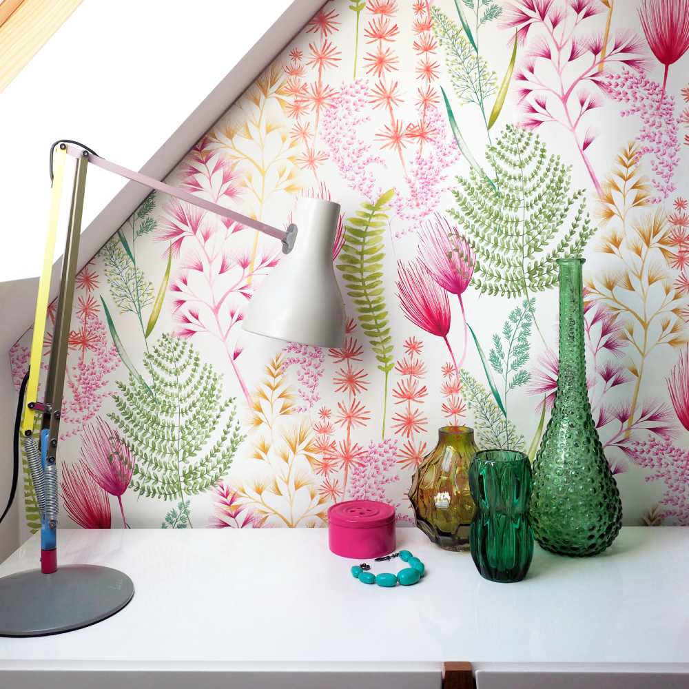 Bring some pretty floral style to your home with the beautiful Summer Ferns Wallpaper by Ohpopsi.