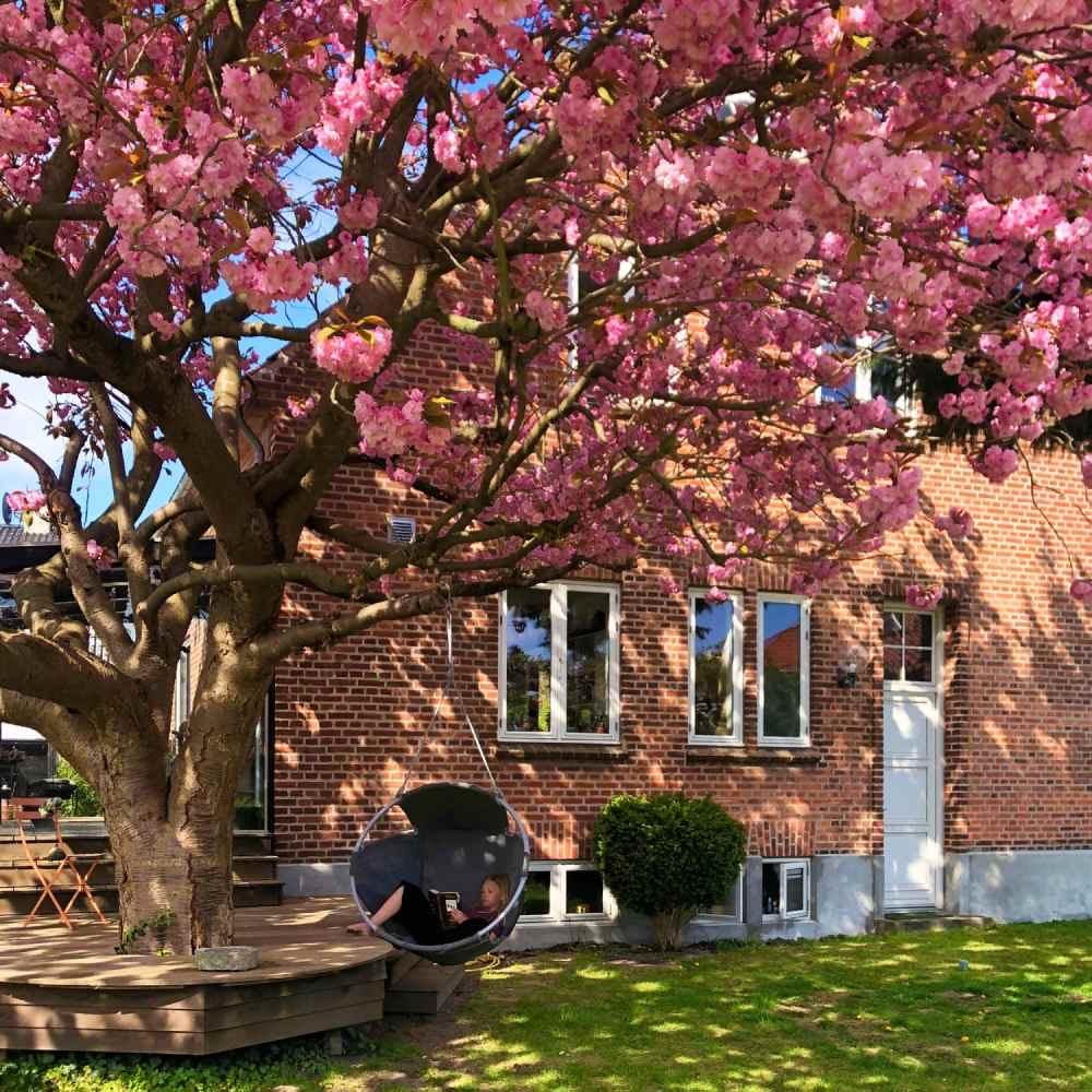 You feel embraced by the walls of the cocoon and yet you still have a free view of the sky, almost as if you were flying. It's perfect for chilling out on a summer day... or snuggle up under a chunky blanket and watch the stars come out. As the fabric is water repellant, this also makes a great poolside chair.