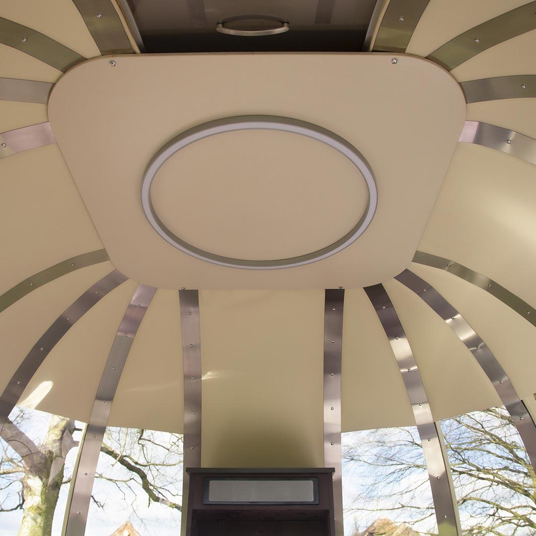 The stainless steel roof reflects heat and offers shade, so this summerhouse will always be a comfortable outdoor living space. It also benefits from the ability to have a 240v power supply, which can power its downlights and soft colour-changing mood lighting that can be set to a colour that suits the occasion. With a combined heater/fan to extend your outdoor living experience throughout winter.