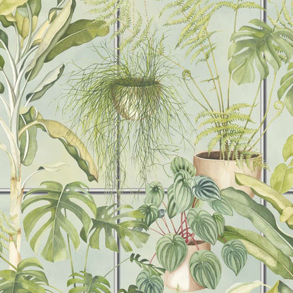 Designed by Brand McKenzie, the striking Green House Wallpaper invites you to step inside and discover a world of gorgeous plants, where your eyes wander in amazement from pot to plant to unveil the secrets of the Green House. An imaginative world that is engaging, compelling and stimulating as you peer in to see what lays beyond the glass.