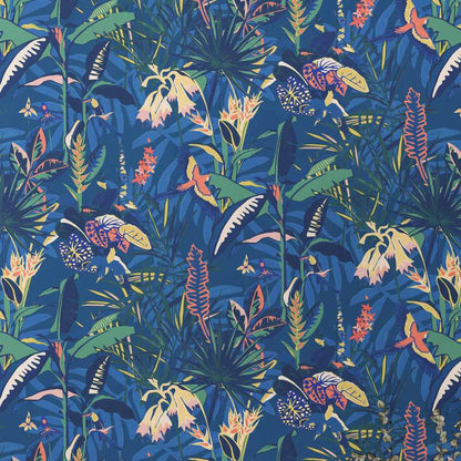 The mesmerising midnight blue background allows the vibrantly coloured birds and foliage to take centre stage.