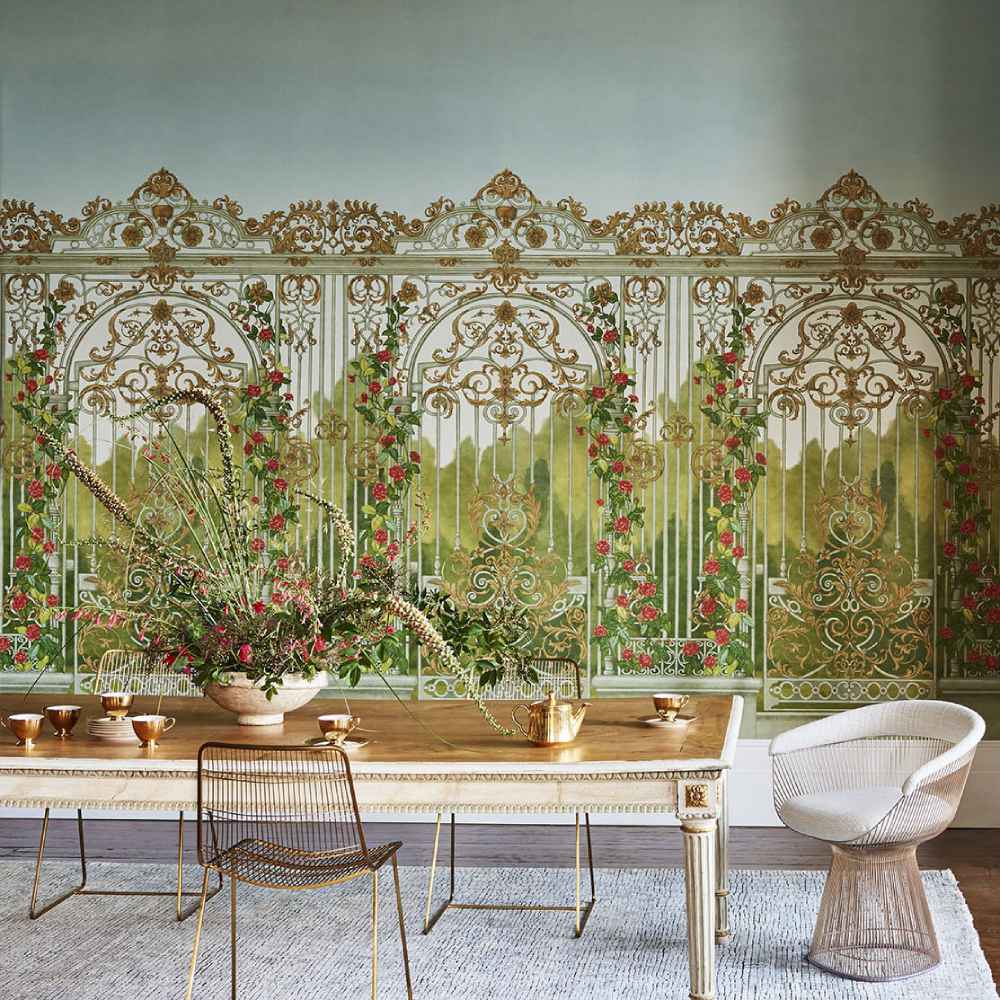 Give your walls a genuine sense of drama with the fabulous Tijou Gate wallpaper from Cole & Son's Great Masters collection. Painstakingly hand-drawn and hand-painted, Tijou Gate is a wonderfully ornamented panel design of ironwork and florals in bloom.