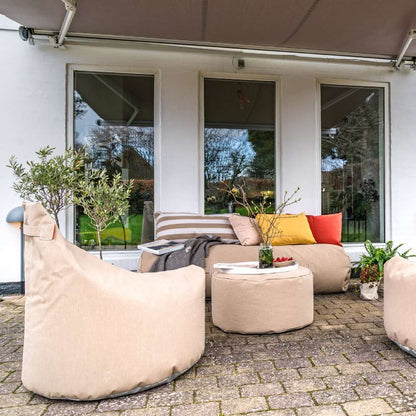 Sunbrella Plus has a surprisingly soft touch which makes this modern interpretation of the humble bean bag suitable for indoor use too.