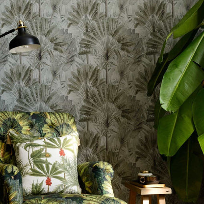 A relaxed tropical design, inspired by the so-called Traveller’s Palm (Ravenala Madagascariensis) that grows specifically on the island of Madagascar. The various green and brown shades and the stunning details of the palm leaves in a soft neutral colourway create a tranquil and sophisticated atmosphere.