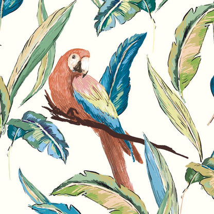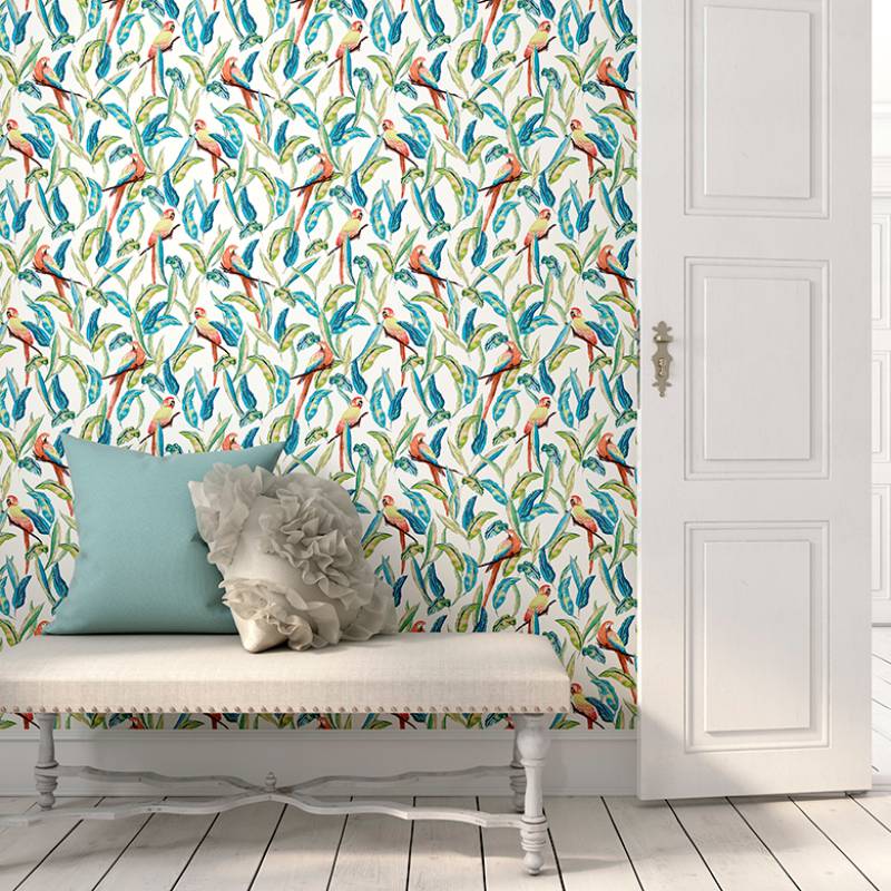Bring a quirky tropical feel to your space with the fabulous Tropical Parrot Wallpaper by cool British brand Ohpopsi!